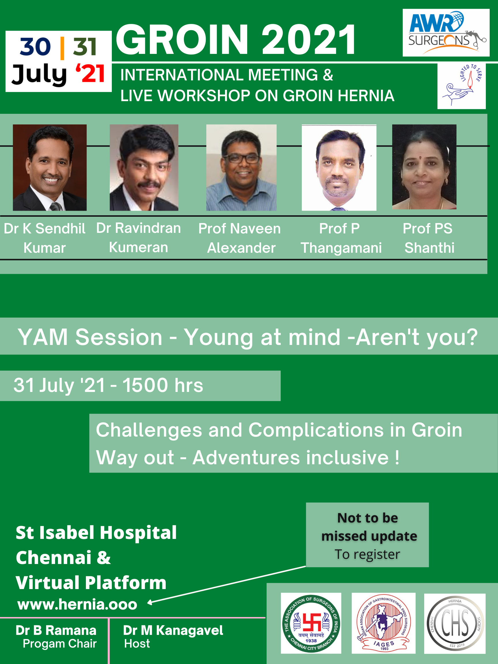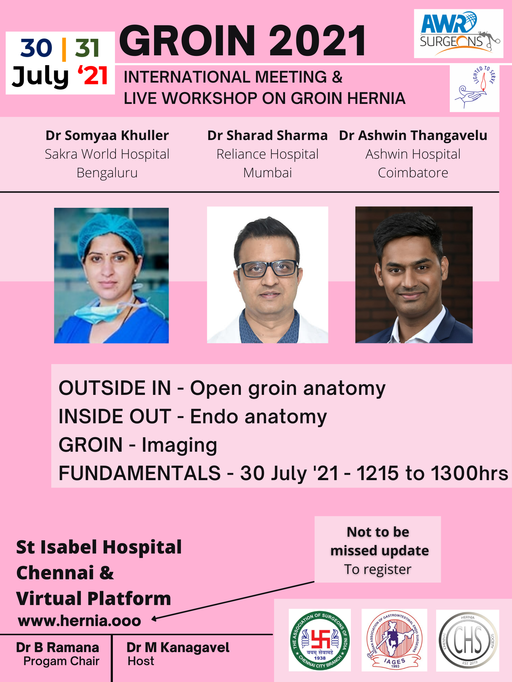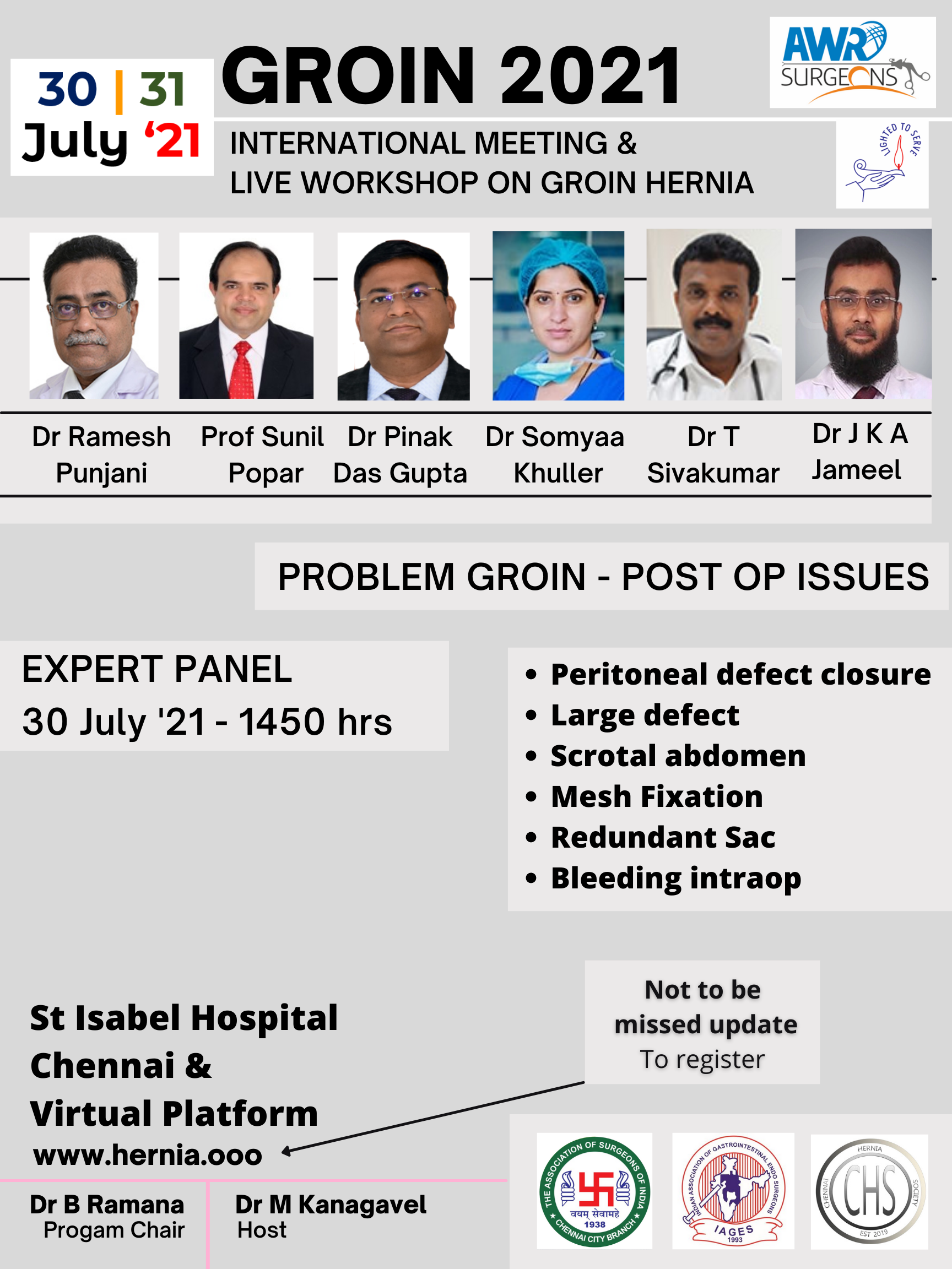 The scientific committee has worked hard to assemble an extensive coverage of diverse aspects of groin hernia, with special impetus from translational research to clinical application based issues. This will be a hybrid meeting with extensive coverage of various aspects of groin hernia followed by live demonstration of various groin hernia procedures.