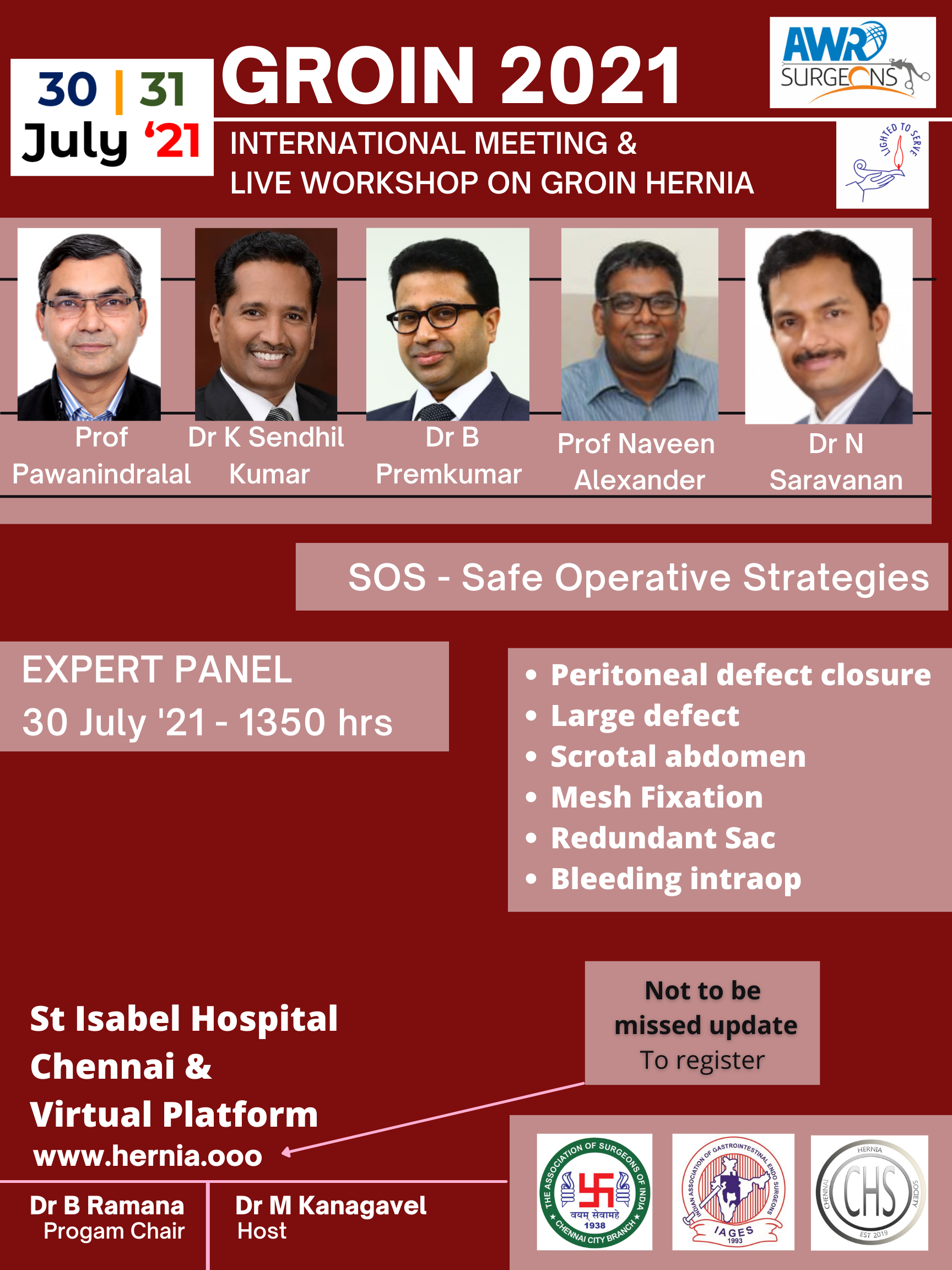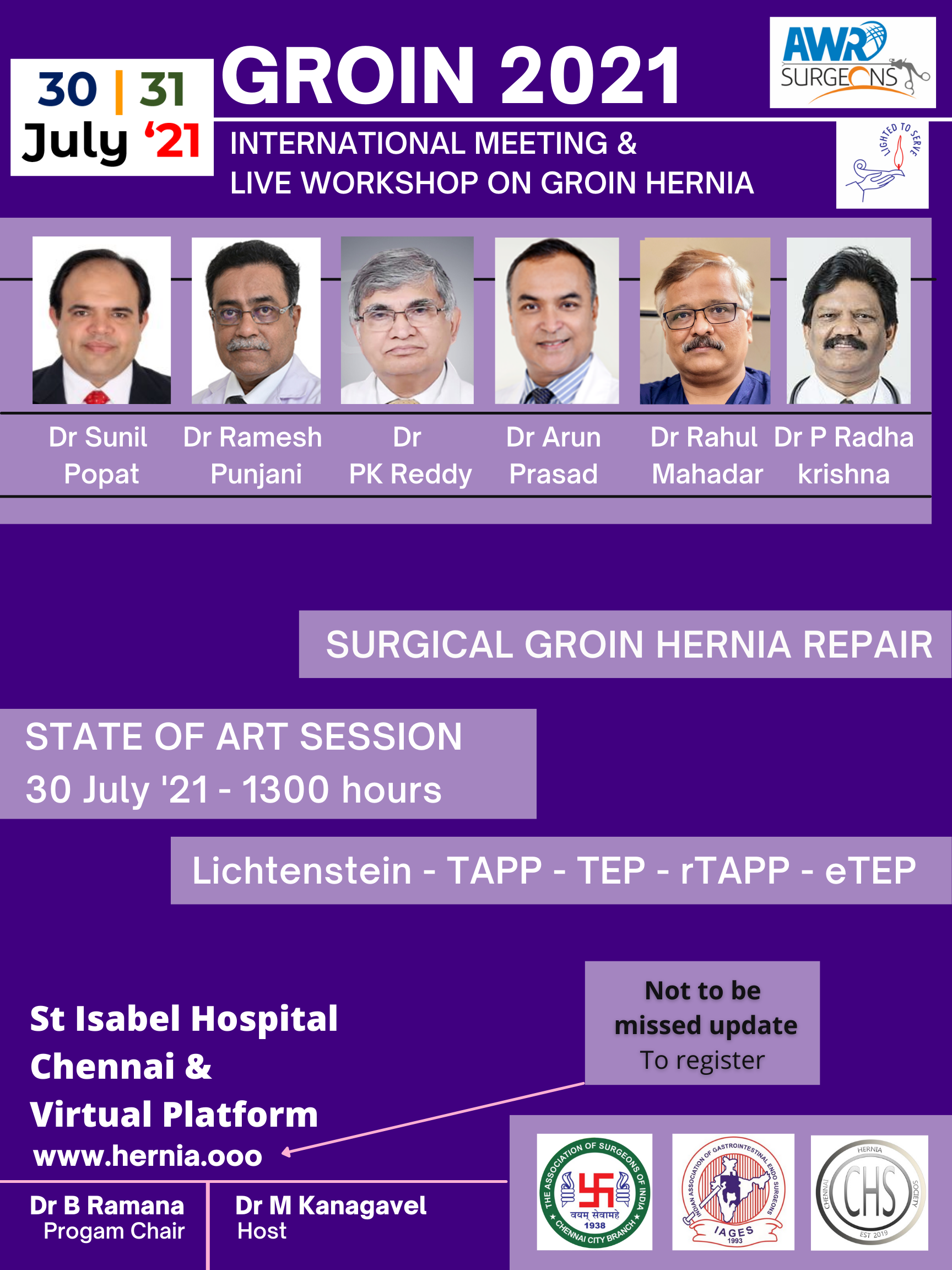 We are hosting a single theme international meeting on groin hernia to be held on 30 th and 31 st July 2021.
